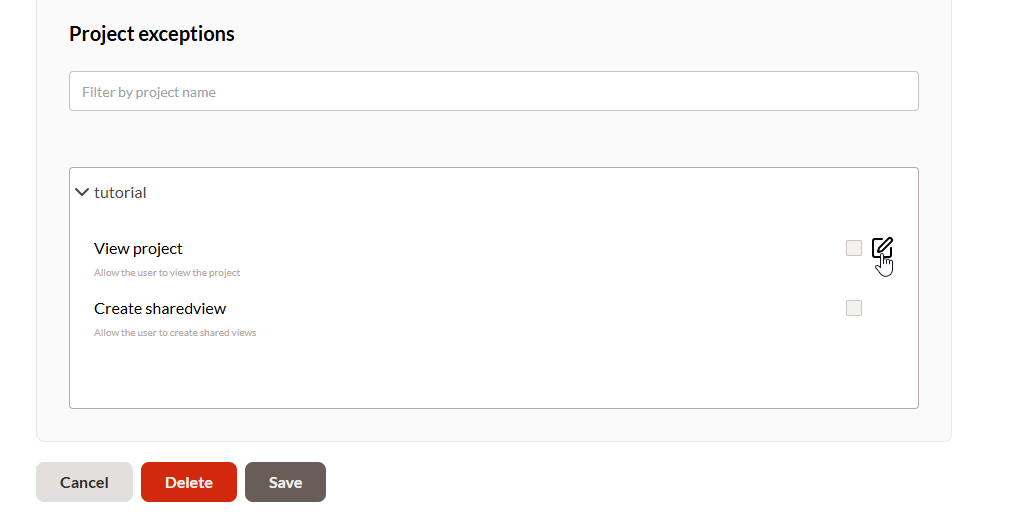 In case you need to override it for specific projects, you can activate the "Override" and enable / disable permissions for that project.